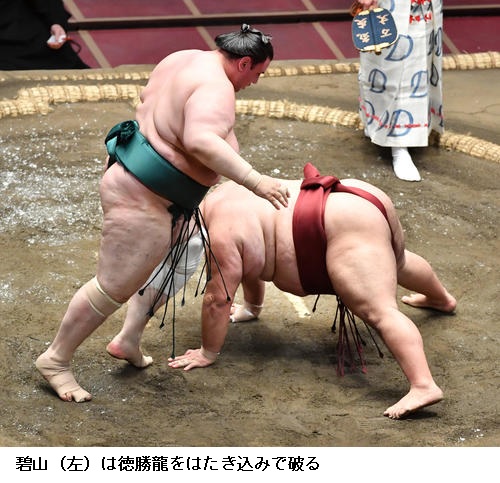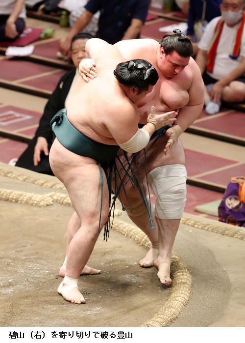 ☆碧山「(照強を)絶対に中に入れないように意識したっす。(3日続けて)小さいお相撲さんばかりでやりづらさはあるけど、中に入れないことを意識しました」