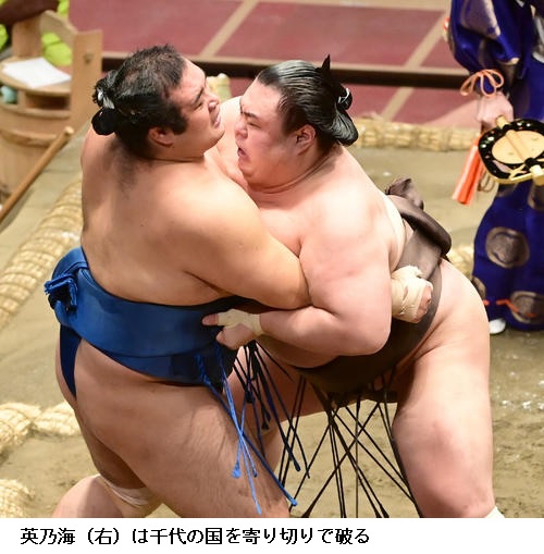 ▽英乃海に千代翔馬は千代翔馬が上手投げ。英乃海は負け越しました。