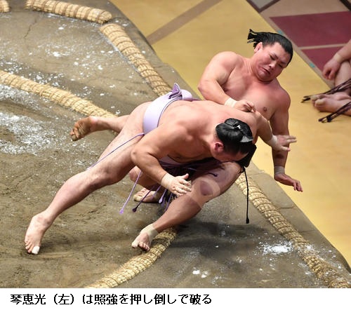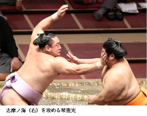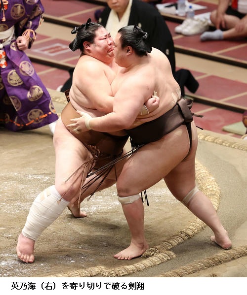 ▽剣翔に琴恵光は琴恵光が寄り切り。