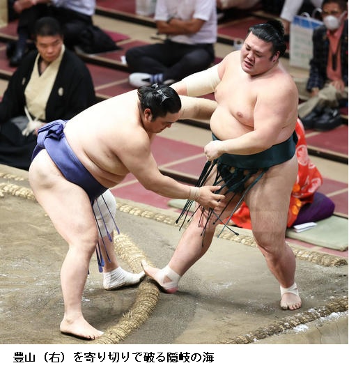 ☆豊山「止強引にいろいろいきすぎたかな。中に入られたくなかったし、まわしを取られたらうるさい相手だから、距離をとりたかった。今日は勝った。それだけですね」
