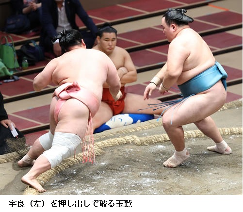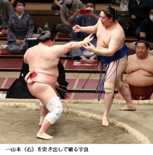 ▽宇良に一山本は宇良が突き出しで勝ちました。