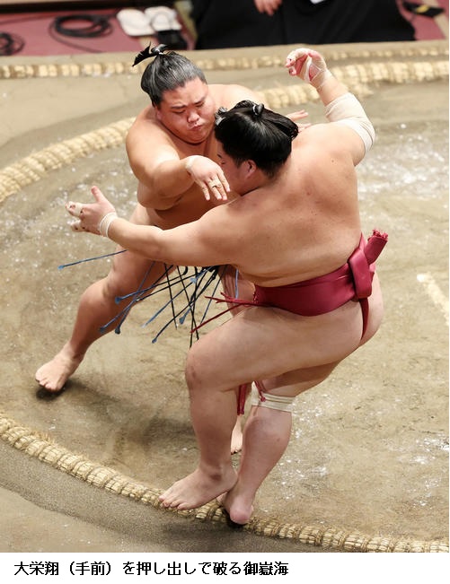 ☆大栄翔「うれしいです。思い切って押していきました。自分では自信になりますし、これから残っていますし、いい相撲が取れるように頑張ります」