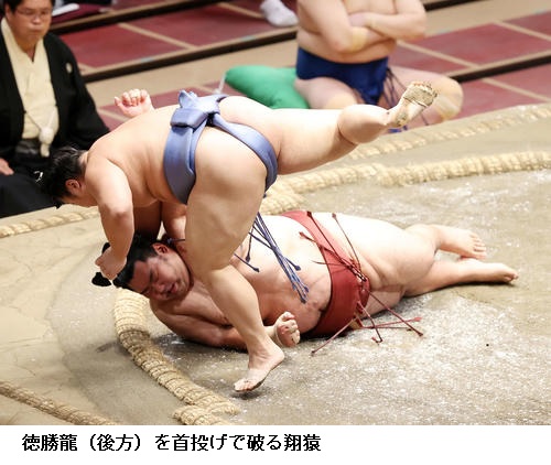 ▽千代翔馬に徳勝龍は千代翔馬が上手投げ。