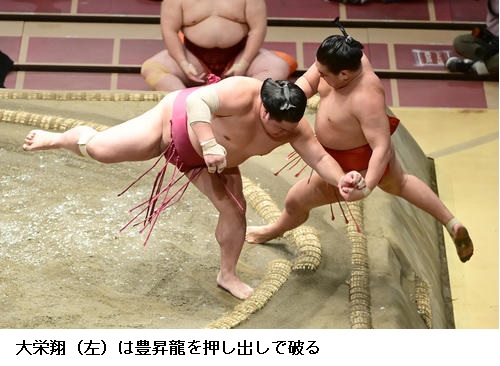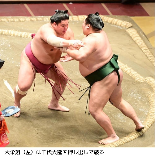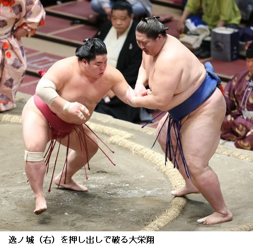 ▽大栄翔に小結・逸ノ城は大栄翔が押し出しで勝ちました。