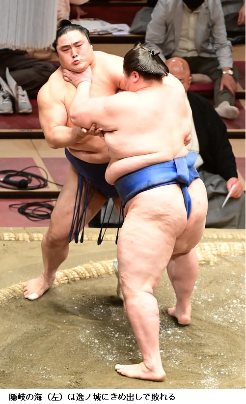 ☆隠岐の海「よく足が出てよかったと思います。前に攻めて、引いてくれたら一番いいかなと思ってました。しっかりリズムを作って頑張りたい」