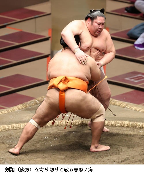 ▽剣翔に志摩ノ海は志摩ノ海が寄り切り。