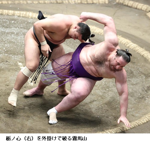 ▽霧馬山に栃ノ心は霧馬山が外掛けで勝ち越しました。