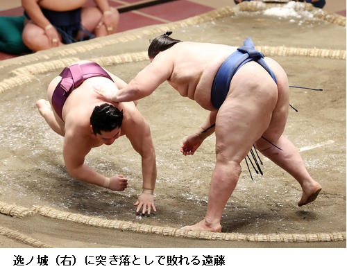 ▽小結・逸ノ城に遠藤は逸ノ城が突き落としで勝ち越しました。遠藤は4敗に後退です。