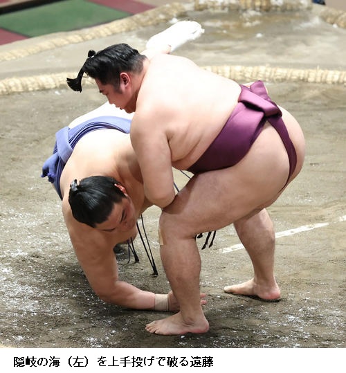 ▽隠岐の海に遠藤は遠藤が上手投げで11勝目を挙げました。