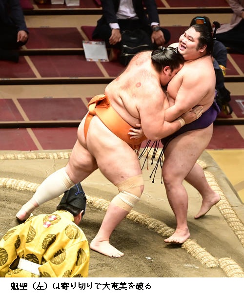 ▽魁聖に十両の大奄美は魁聖が寄り切り。大奄美は負け越しました。