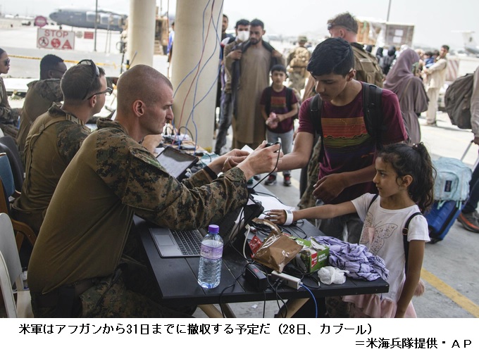 米、瀬戸際の退避作戦 反撃テロのリスク根強く ――米軍が31日までにアフガニスタンから撤収しても、各国は自国民や関係するアフガン人の国外退避支援を続ける方針だ。ただ、拠点空港の運営やアフガン国内の移動の自由はイスラム主義組織タリバンの意向に大きく左右される。新たなテロが発生するリスクも根強く、各国の退避作戦は瀬戸際に立たされている。