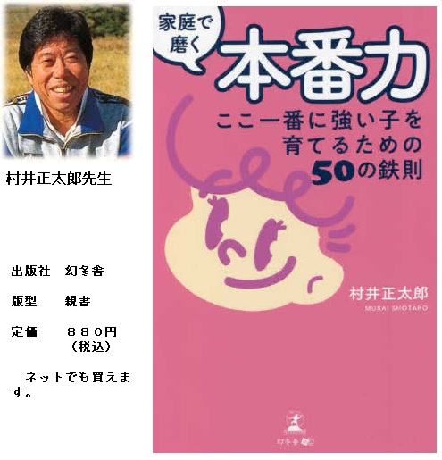 コアラ体育クラブの村井正太郎先生が体験をもとに記した「家庭で磨く本番力 ここ一番に強い子を育てるための50の鉄則」という本を上梓されました。年頃のお子様を持たれる方に一読されることをお勧めします。