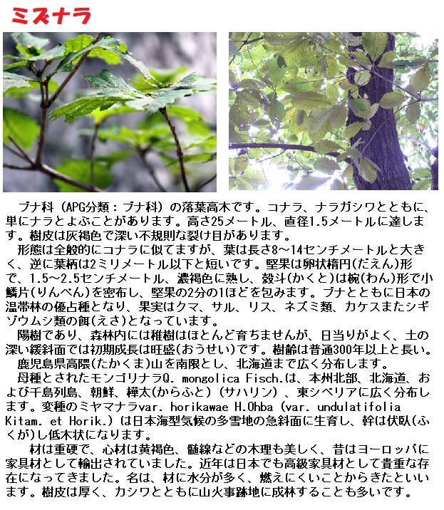 ブナ科コナラ属の落葉広葉樹の楢(なら)の木とされています。写真はミズナラです。