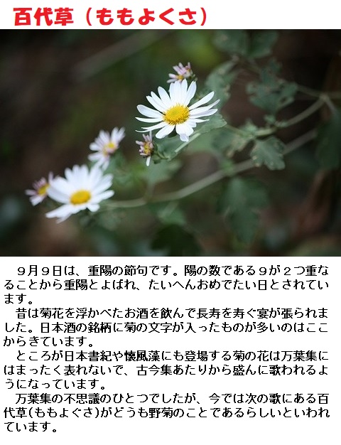 菊、蓬(よもぎ)、または露草(つゆくさ)ではないかと考えられていますが、はっきりとはしていません。