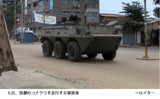 ギニアでクーデターか 首都で銃撃、大統領拘束も ―― 【ナイロビ=共同】西アフリカ・ギニアからの報道によると、首都コナクリにある大統領官邸付近で5日、激しい銃撃が発生し、ギニア軍兵士は国営テレビでコンデ大統領が拘束されたと表明した。軍兵士は憲法と政府の停止、国境閉鎖を宣言した。軍の一部によるクーデターの可能性がある。