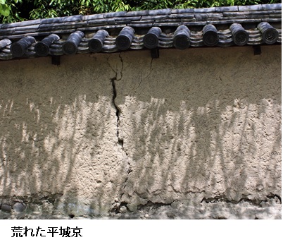 天平12年(西暦740年)、平城京から恭仁京への遷都がなされました。その際、大極殿(だいこくでん)などが解体・移築されたため、平城京はあっというまに荒廃がすすんだようです。