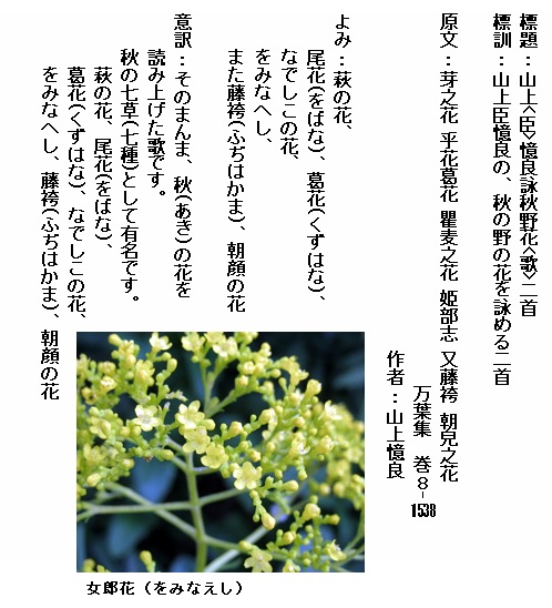 巻8-1538:萩の花尾花葛花なでしこの花をみなへしまた藤袴朝顔の花