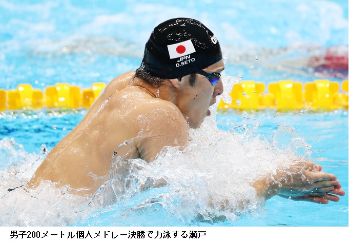 男子200メートル個人メドレー決勝で瀬戸大也(TEAM DAIYA)は4位、萩野公介(ブリヂストン)は6位だった。男子200メートル背泳ぎ決勝の入江陵介(イトマン東進)は7位だった。女子400メートルメドレーリレー予選で日本(小西、渡部、池江、五十嵐)は全体6位で8月1日の決勝へ進んだ。