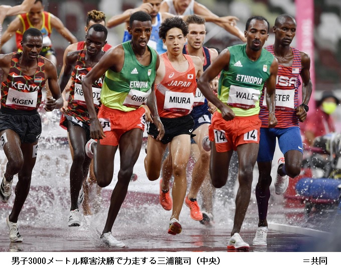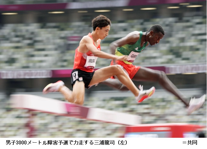競技が始まり、男子3000メートル障害予選で三浦龍司(順大)は8分9秒92の日本新記録で1組2着となり決勝に進んだ。同種目の日本勢の決勝進出は49年ぶり。男子400メートル障害予選の山内大夢(早大)は2組3着で準決勝に進出。男子走り高跳び予選で戸辺直人(JAL)は2メートル28を跳び、決勝に進出した。