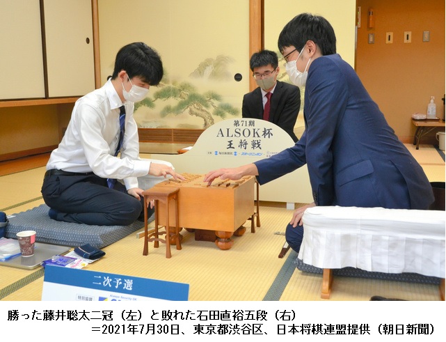 王将戦の挑戦者は、1次予選と2次予選を勝ち抜いた棋士3人と、前期の挑戦者決定リーグ戦の上位4人によるリーグ戦で決める。藤井二冠は前期のリーグ戦で上位4人に入れず、今期は2次予選から出場している。 (朝日新聞DIGITAL 2021年7月30日 18時48分)