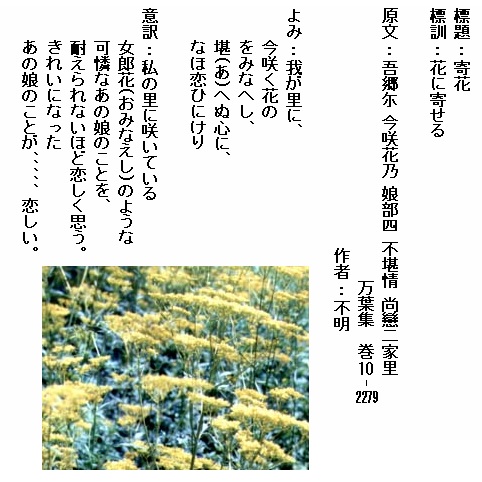 巻10-2279:我が里に今咲く花のをみなへし堪へぬ心になほ恋ひにけり
