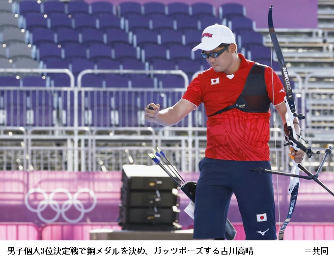 アーチェリー男子個人3位決定戦で、古川高晴(近大職)が湯智鈞(台湾)を下して銅メダルを獲得した。