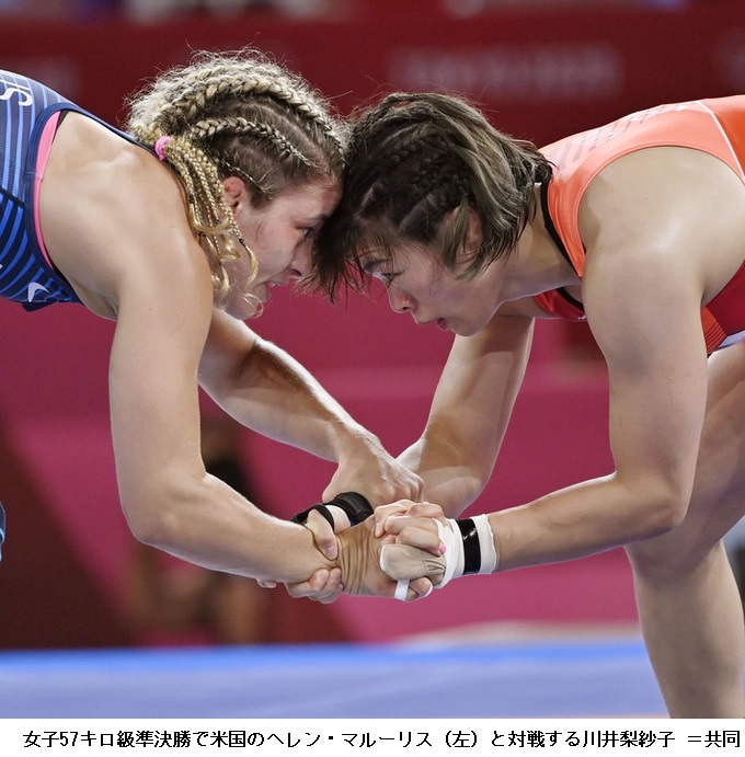 東京五輪第14日の5日、2016年リオデジャネイロ五輪レスリング63キロ級女王の川井梨紗子(ジャパンビバレッジ)が57キロ級決勝でクラチキナ(ベラルーシ)を下し、2大会連続となる金メダルを獲得した。妹の友香子(ジャパンビバレッジ)が4日の62キロ級を制しており、同大会姉妹金メダルとなった。