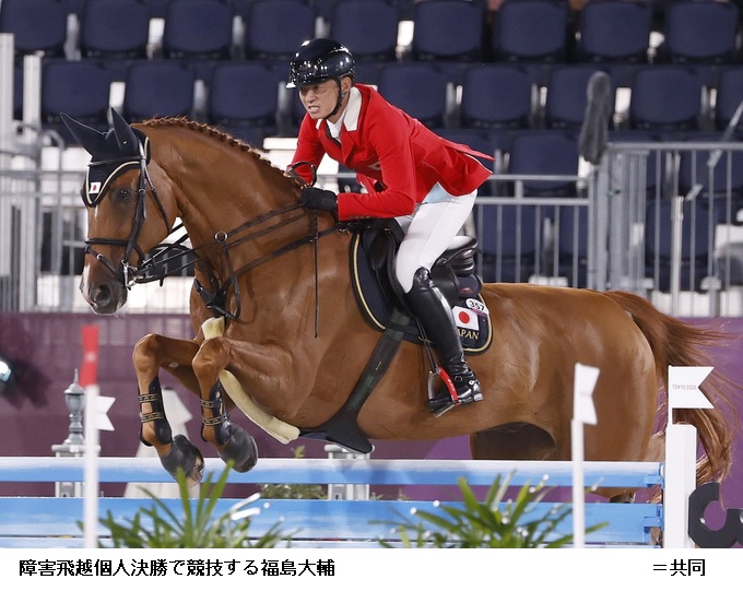3種目で争う総合馬術は2日間に分けて実施される第1種目の馬場馬術を終え、日本は団体で4位につけた。個人では大岩義明(nittoh)が31.50で21位とした。前日の30日に出場した戸本一真(日本中央競馬会)は7位、田中利幸(乗馬ククレイン)は29位。8月1にちにクロスカントリー、2日に障害飛越が行われる。