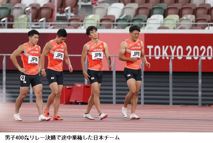 男子400㍍リレー決勝で日本(多田、山県、桐生、小池)は1走から2走のバトンミスでゴールできなかった。