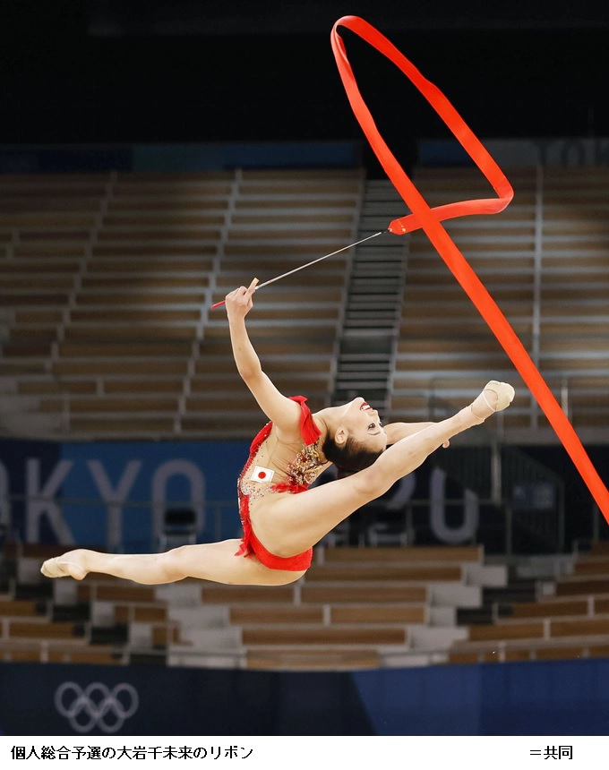 個人総合予選で喜田純鈴(エンジェルRG・カガワ日中)は4種目合計92.8001111位、大岩千未来(イオン)は87.550点で19位となり、上位10人による7日の決勝に進めなかった。 【日本經濟新聞 2021年8月6日 9:46 (2021年8月6日 23:02更新)】