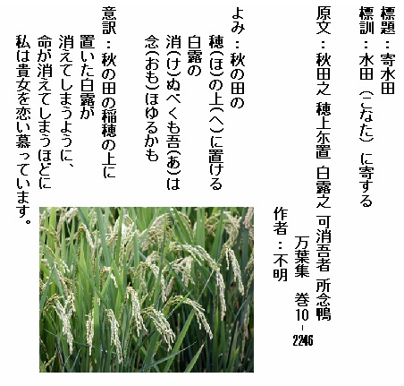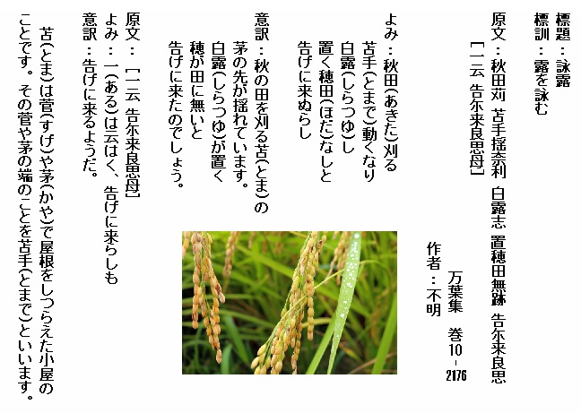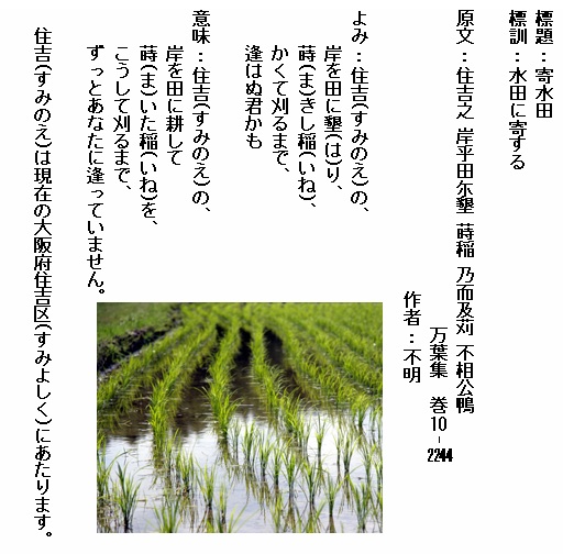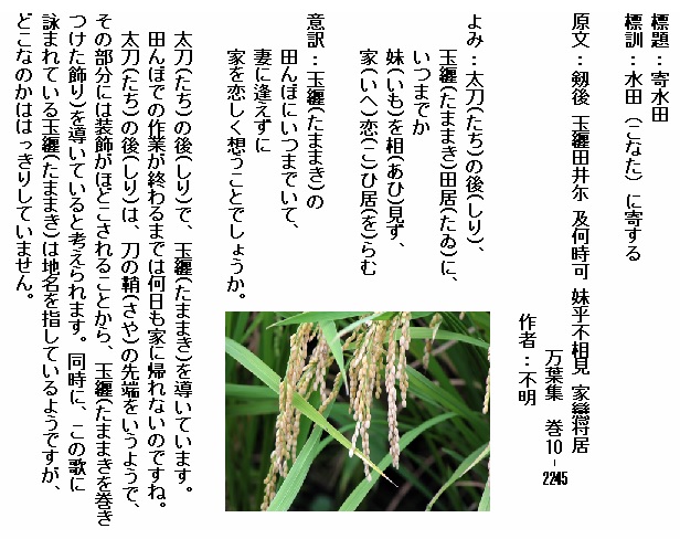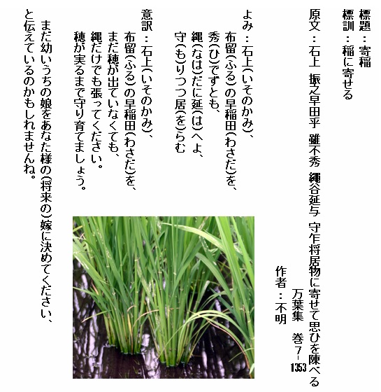 「むら苗に」を「群苗に」と訓じて解釈しようとする向きがありますが、これは「占(うら)苗に」に相違ありません。「むら」は「うら」の東国訛りです。結句の「せも」も「せむ」の東国訛りです。