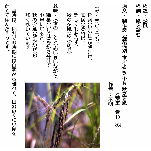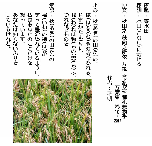 巻14-3550:おしていなと稲は搗かねど波の穂のいたぶらしもよ昨夜ひとり寝て