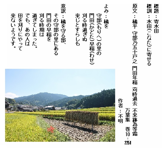 当時の貴族、官人は朝廷から土地を与えられ、自ら耕す者も少なくありませんでした。郊外が多かったようですが、この歌の作者は余程辺鄙なところを割り与えられたのでしょう。
