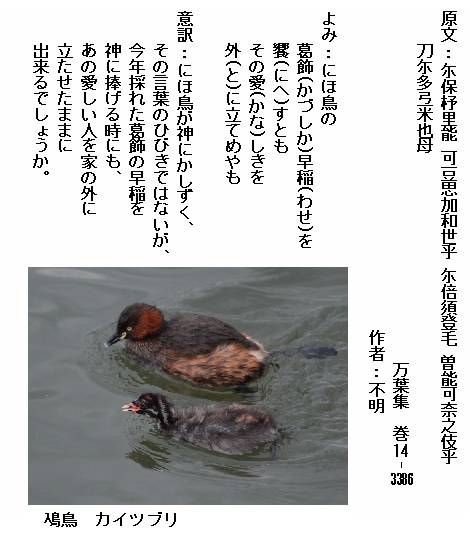 巻14-3386:にほ鳥の葛飾早稲をにへすともその愛しきを外に立てめやも