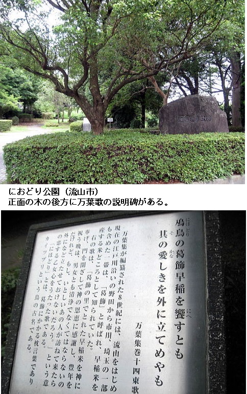 ◎下総国の東歌です。流山市のはずれ、鳰鳥公園にこの歌の歌碑があります。