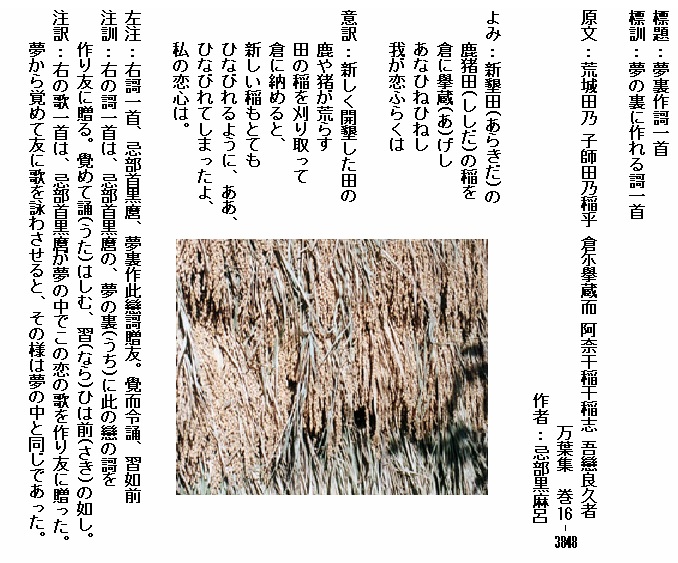 巻16-3848:あらき田の鹿猪田の稲を倉に上げてあなひねひねし我が恋ふらくは