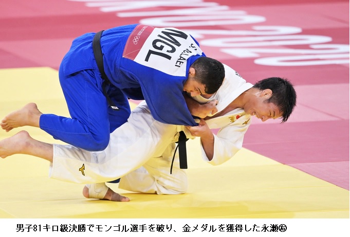 柔道男子81キロ級は永瀬貴規(旭化成)が決勝戦の延長でモラエイ(モンゴル)から技ありを奪って優勢勝ちし、金メダルを獲得した。今大会の日本男子は初日から全4階級制覇となった。女子63キロ級の田代未来(コマツ)は2回戦で敗退した。