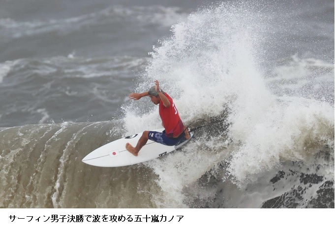 新競技のサーフィンの男子で五十嵐カノア(木下グループ)が銀メダルを獲得した。準決勝でメジナ(ブラジル)に勝利したが、決勝でフェヘイラ(ブラジル)に敗れ、惜しくも初代王者は逃した。女子の都筑有夢路は銅メダルを獲得。準決勝でムーア(米国)に競り負けたが、3位決定戦でマークス(米国)を破った。