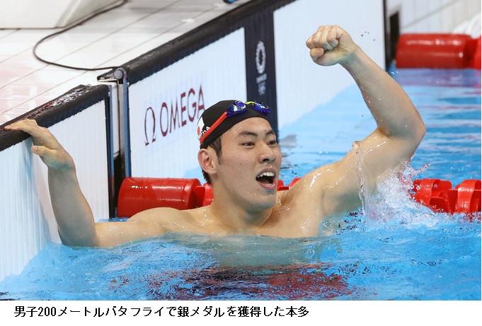 男子200メートルバタフライでは今大会の日本男子で初めて決勝に進んだ本多灯(アリーナつきみ野SC)が1分53秒73で銀メダルを獲得した。日本勢はこの種目で5大会連続の表彰台。