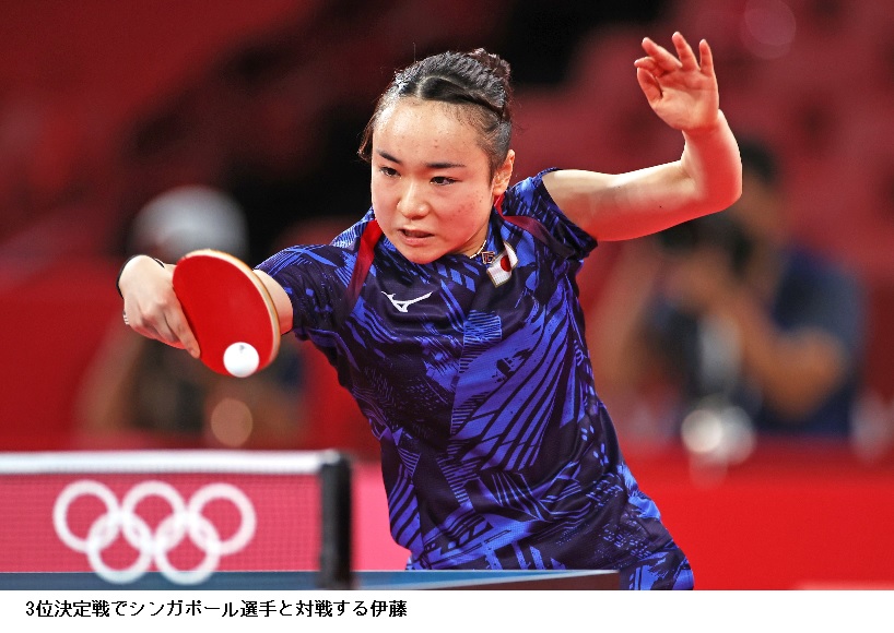 東京五輪第7日の29日、卓球女子シングルスの3位決定戦で、伊藤美誠(スターツ)がユ・モンユ(シンガポール)を4-1で破り、この種目で日本勢初の表彰台となる銅メダルを獲得した。