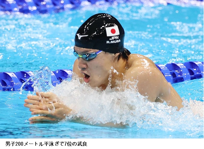 男子200メートル平泳ぎ決勝で、武良竜也(ミキハウス)は2分8秒42の7位だった。準決勝で、男子の200メートル個人メドレーは瀬戸大也(TEAM DAIYA)が1分56秒86の全体3位、2016年リオデジャネイロ五輪銀メダルの萩野公介(ブリヂストン)が1分57秒47の6位でそろって決勝へ。200メートル背泳ぎは12年ロンドン五輪銀メダルの入江陵介(イトマン東進)が1分56秒69の全体8位で4大会連続の決勝進出を決め、砂間敬太(イトマン東進)は1分57秒16の14位で敗退した。新種目、混合400メートルメドレーリレー予選で、小西杏奈(ガスワン)佐藤翔馬(東京SC)松元克央(セントラルスポーツ)池江璃花子(ルネサンス)の順で泳いだ日本は全体9位で落選した。