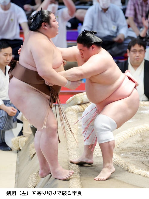 ▽剣翔に宇良は宇良が寄り切りで勝ちました。