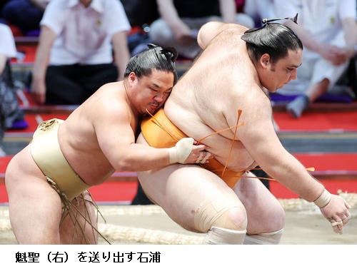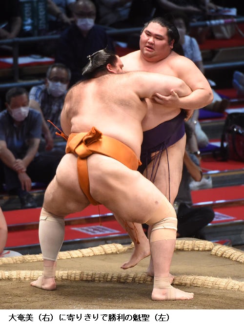 ☆魁聖 (相手の宇良が自身のまげをつかんで反則負け)感触はあった。初めて引っ張られたから「あれっ?」と思って。ぐっと引っ張られたから。指が引っかかっただけかもしれないし、分からないですね。