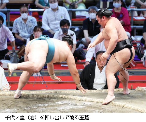 ▽玉鷲に千代ノ皇は玉鷲が押し出し。