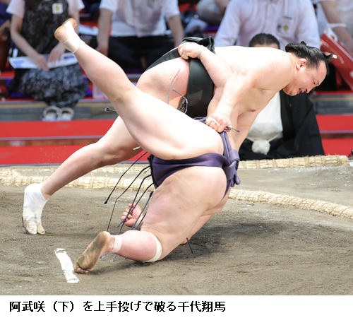 ▽阿武咲に千代翔馬は千代翔馬が上手投げ。