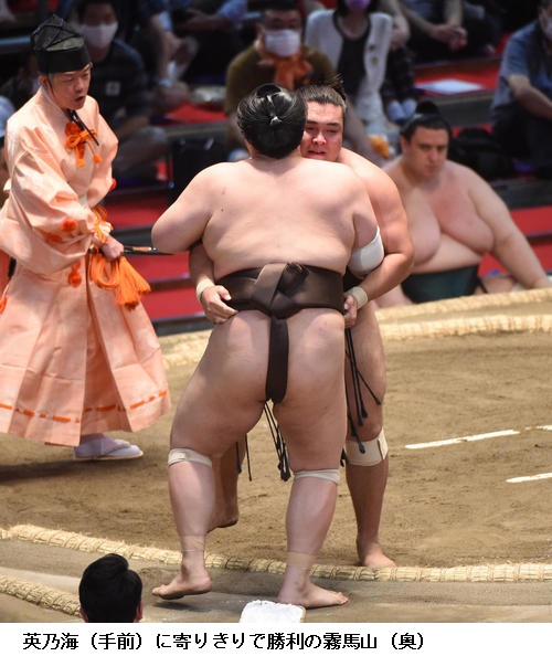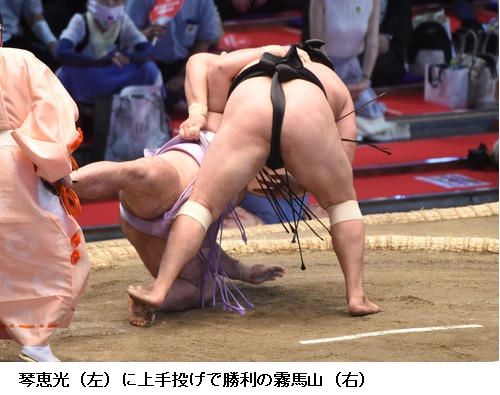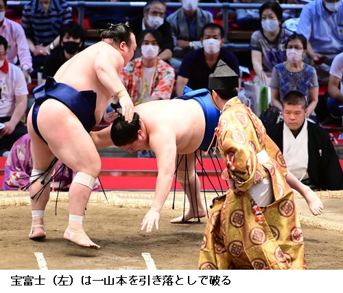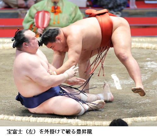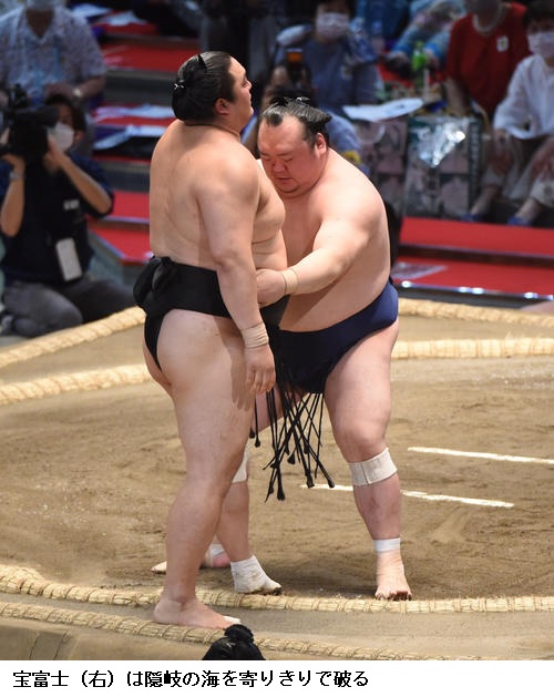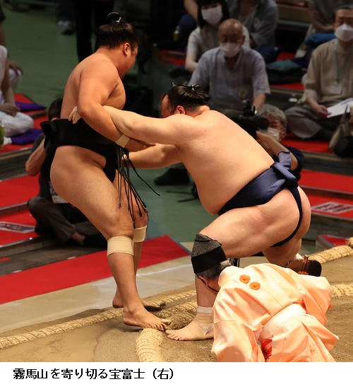 ▽霧馬山に宝富士は、宝富士が寄り切りで勝ちました。