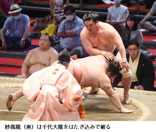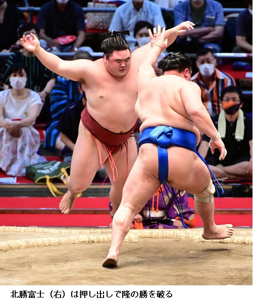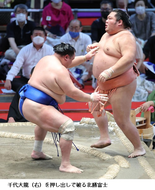 ▽北勝富士に千代大龍は北勝富士が押し出し。