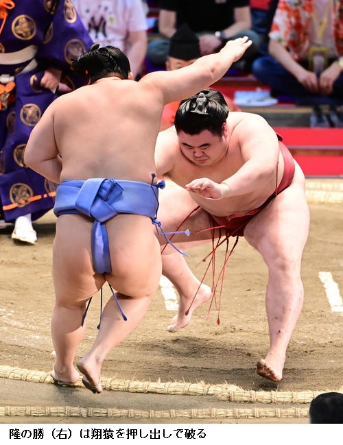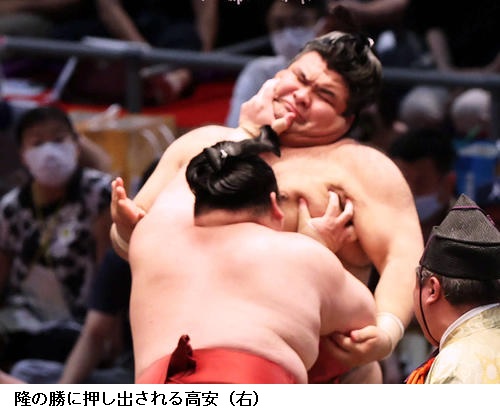 ▽関脇・高安に隆の勝は隆の勝が押し出し。