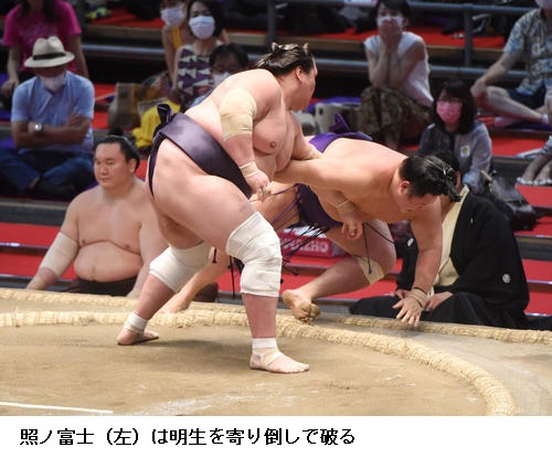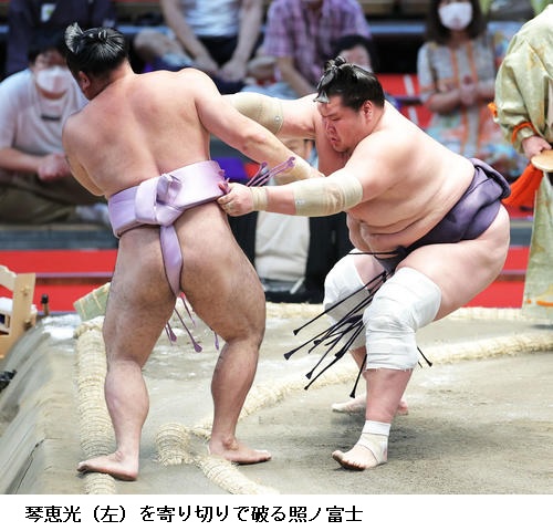 ▽綱とりの大関・照ノ富士に琴恵光は照ノ富士が寄り切って7連勝。