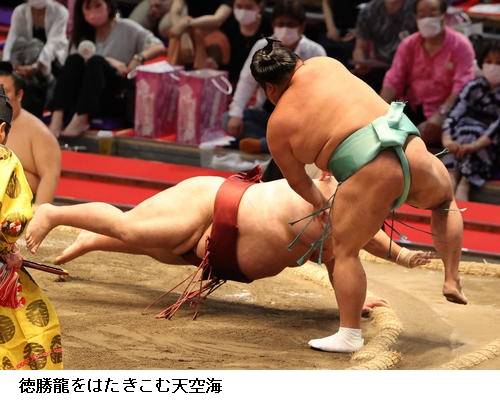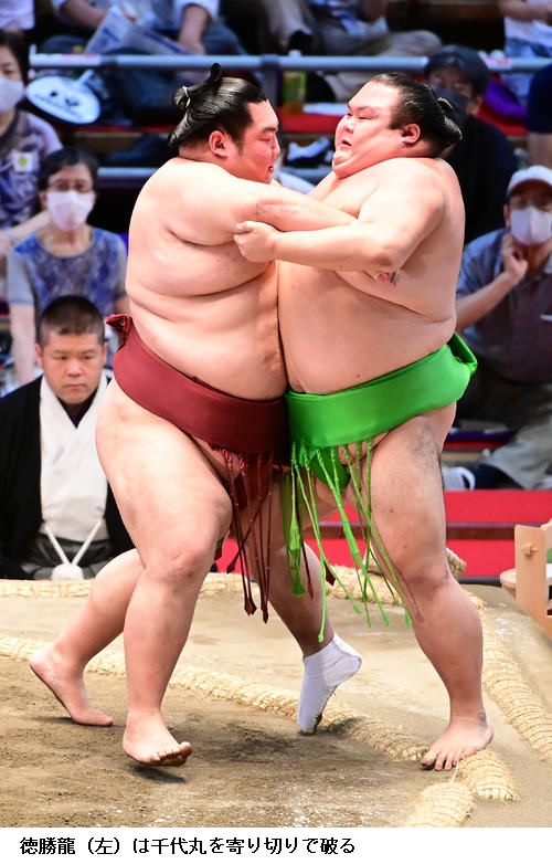 ☆徳勝龍「左上手は取られたけど、右は差されないようにだけ意識して我慢できたと思います。負け越しは決まっているけど関係なく、15日間しっかりやらないとですね」